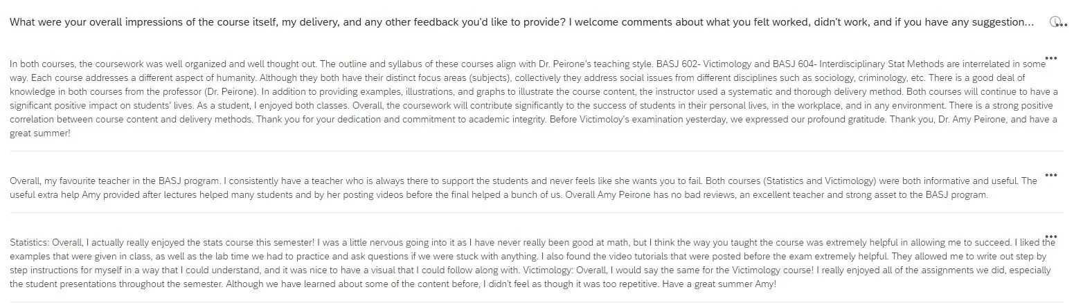 Some of the notes & feedback I received from students